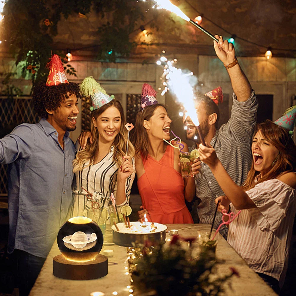 Experience the magic of the universe with our 3D Crystal Lamp, a luminous work of art that combines advanced technology with elegant design. Using high-precision laser engraving, this crystal sphere beautifully displays the Solar System and other fascinating astronomical scenes, creating an ethereal and immersive projection. Its base, made of natural beechwood, adds a sophisticated touch while ensuring durability and safety, free from harmful chemicals or paints.