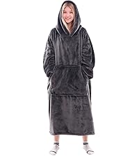 Blanket hoodie with sleeves cover shoulders, arms, allows you to move around.
