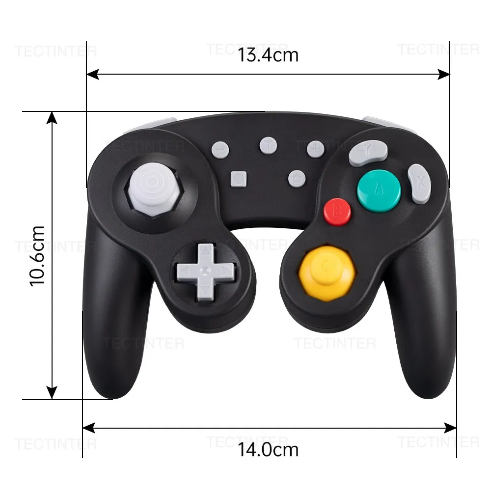 This Bluetooth Game cube Controller is designed to recall the look and feel of a GameCube controller, but also let players have fun with classic games. It features full button layout with any For modern Switch Pro controller and support to play For Switch, Lite , PC, IOS, Android, Steam.