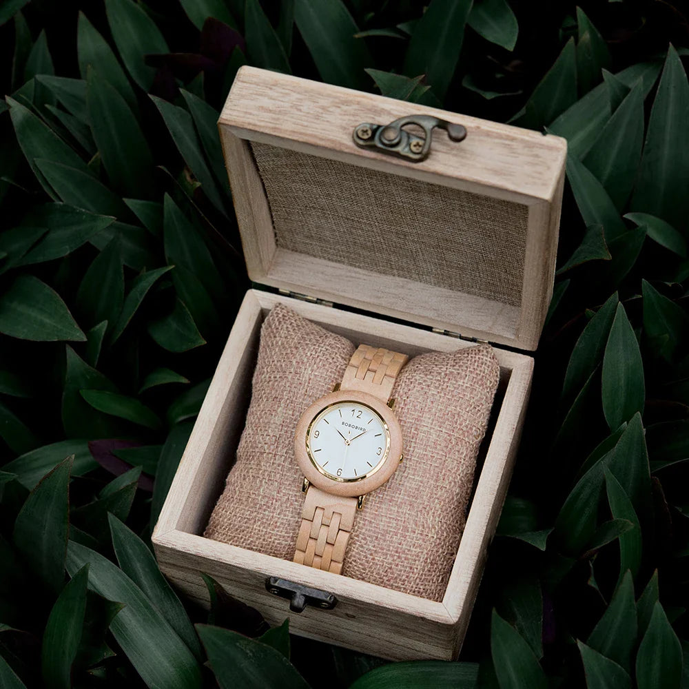 Introducing the BOBO BIRD Women’s Wooden Fashion Watch, a timepiece designed to reflect the perfect balance of nature and fashion-forward style. Handcrafted from premium wood, this watch offers a sleek and minimalist design that complements any wardrobe. Whether you're looking for a unique accessory for everyday wear or a standout piece for special occasions, the BOBO BIRD Wooden Fashion Watch offers an eco-friendly alternative to traditional watches while maintaining elegance and sophistication. Lightweight, comfortable, and sustainable, this watch is perfect for the modern woman who values both style and the environment.