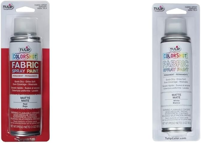Spray paint for fabric. Aerosol Fabric Spray available in a 3-oz. spray can. Works great on natural and synthetic fabrics. Perfect for all over color or using with stencils