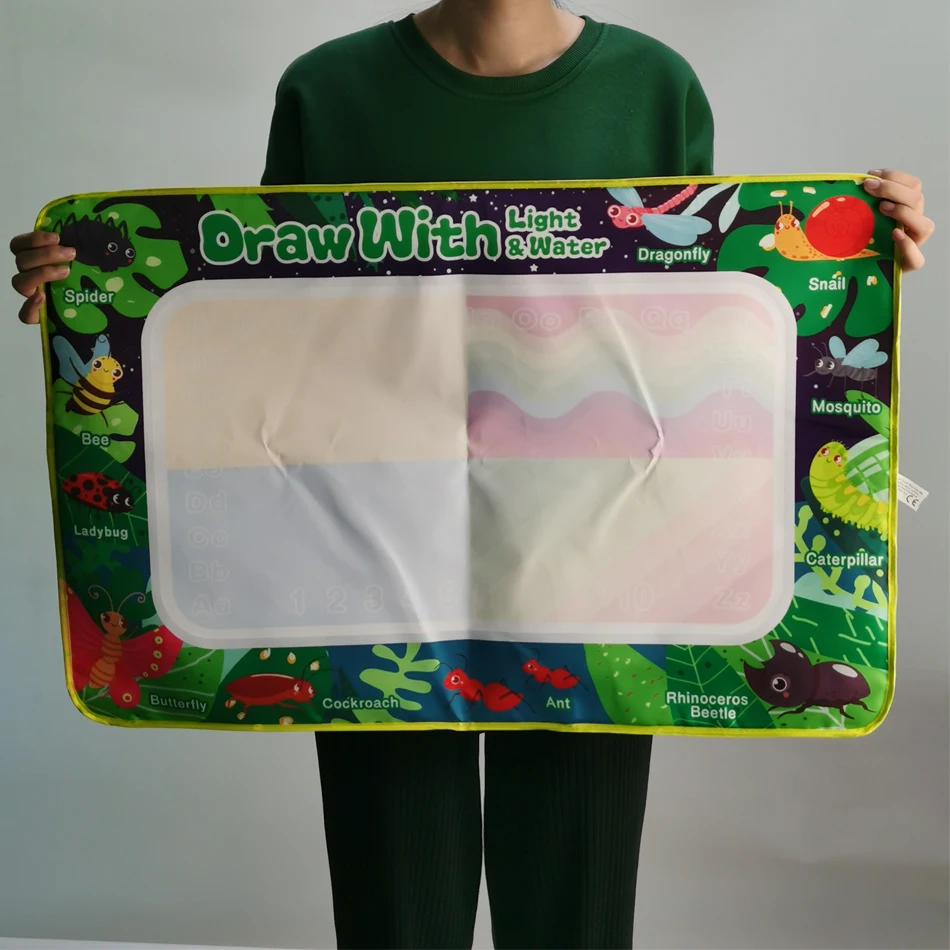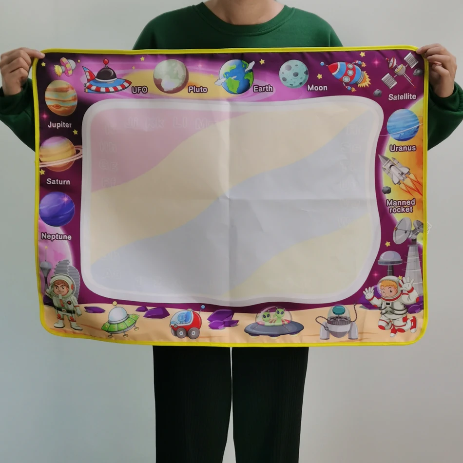 No ink, No paint, Non-toxic, Non-polluting. Never make a mess. The back of the mat is water-resistant nylon material,clean and safety for kids. The traces will never be chaotic, satisfying the imagination and creativity of the kids' infinite painting.
