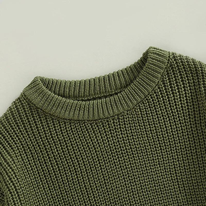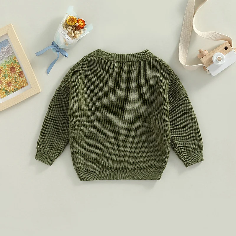 Toddler Baby Round Neck Sweaters, Long Sleeve Solid Color Loose Knitted Pullovers