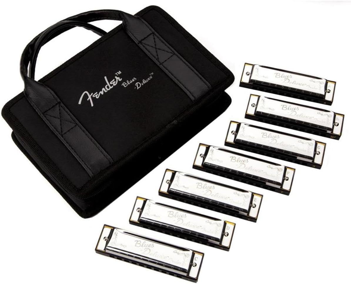 One Key of C Fender blues deluxe harmonica and harmonica holder for a complete harmonica set, 11.42x7.48x3.54 inches