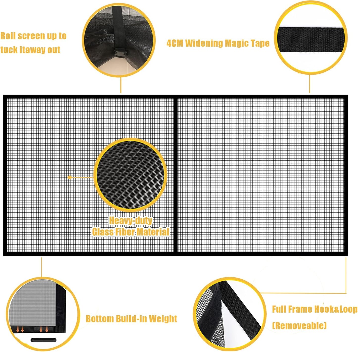 MAGNETIC SCREEN MESH DOOR with Full Frame Magic Tape.Our 16.3*7.15FT mesh screen can be used as a substitute for fixed screens, suitable for front, rear, internal or external entry, terraces, terraces, porches, balconies, etc.