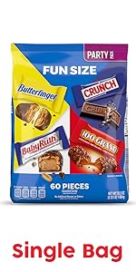 Butterfinger, CRUNCH, Baby Ruth and 100 Grand, Bulk 60 Pack, Assorted Fun Size Chocolate Candy Bars, Stocking Stuffers, 37.2 oz