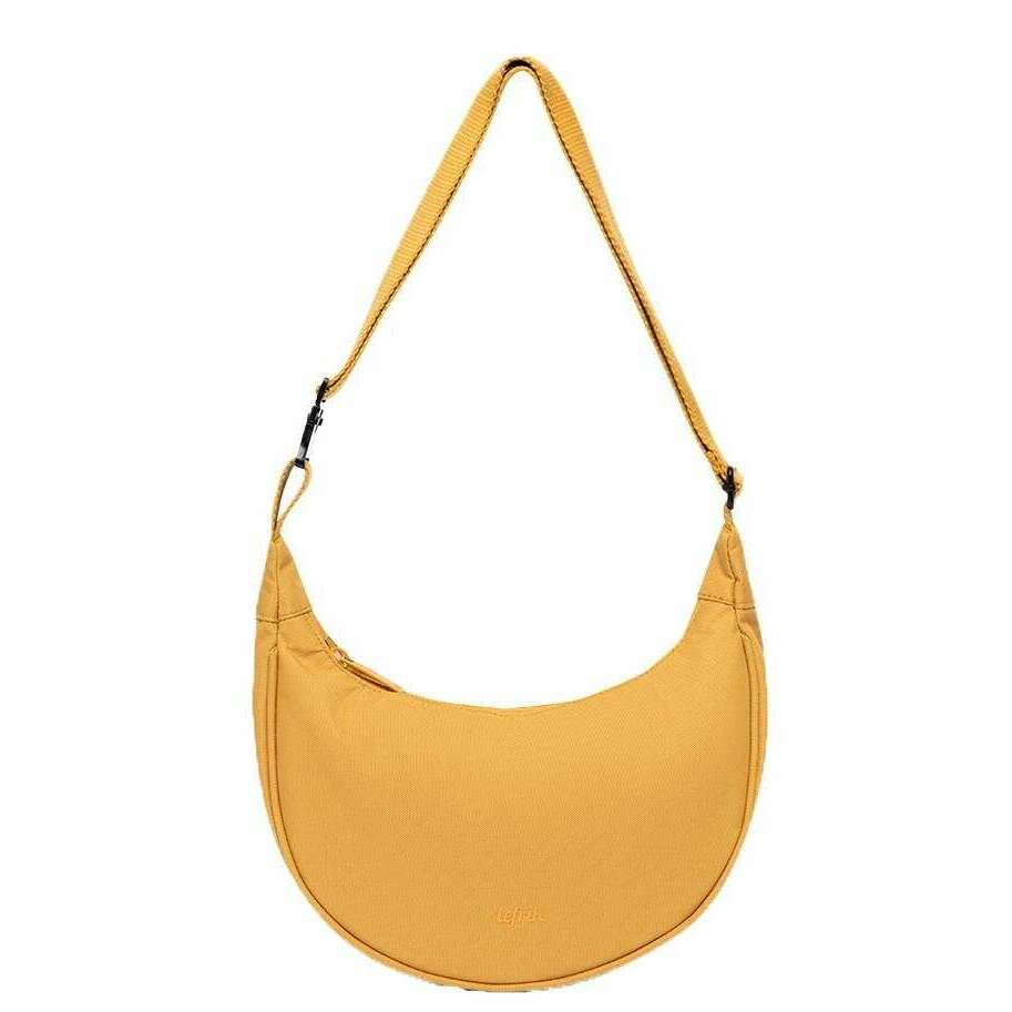 This well made women's lua shoulder bag from Lefrik comes in a mustard yellow colour and is manufactured from 100% oxford fabric. It measures 21cm(height) x 18.3cm(width) x 5.5cm(depth). All the bags come complete with lefrik packaging. The Lefrik Lua Shoulder Bag - Mustard Yellow is a stylish and versatile accessory designed to add a pop of colour and functionality to your wardrobe. This half-moon bag with zippered closure also features an inner zipped pocket to keep your belongings safe and accessible. Its sleek and modern design, exuding contemporary elegance with an adjustable cotton webbing strap which allows you to customize the fit to your preference. You can wear it comfortably over the shoulder or across the body for hands-free convenience.