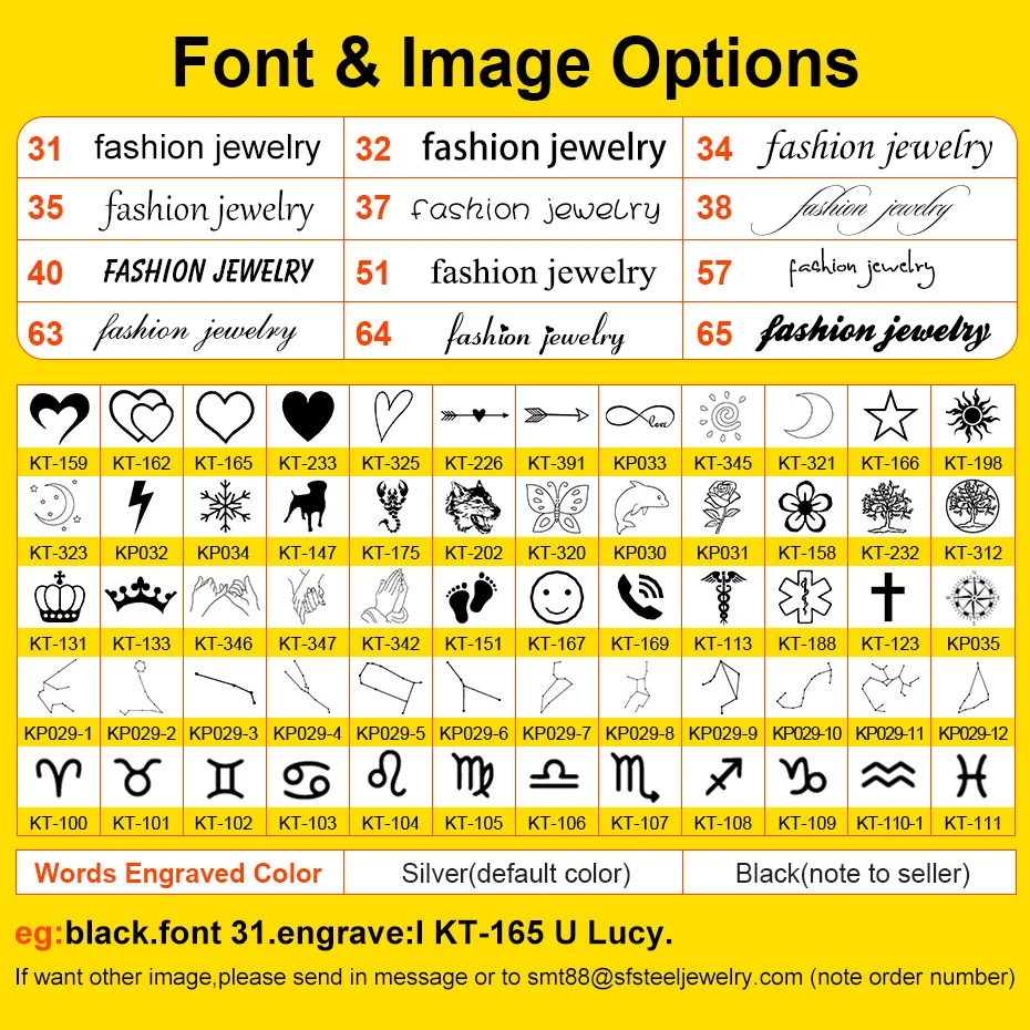 eg: Black font 50, engrave : Lucy (165) forever. | |||