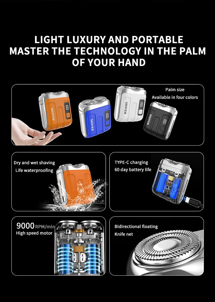 Mini Electric Smart Shaver Household Car Shaver Digital Display Dual Blade Rechargeable Shaver Powerful Beard Trimmer Tool