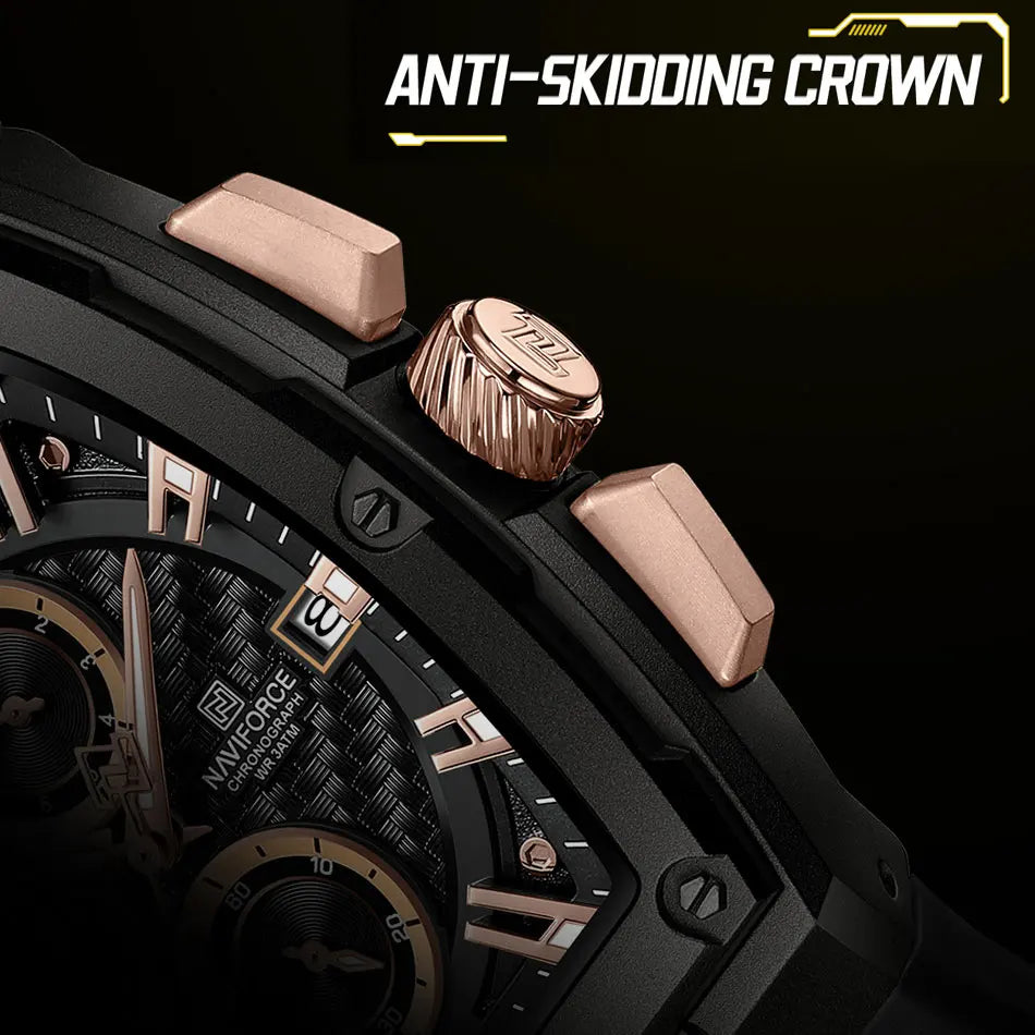 Introducing the NAVIFORCE New Men's Multifunctional Sports Watch, a perfect combination of rugged functionality and modern style. Whether you're an outdoor enthusiast, athlete, or just appreciate a quality timepiece, this watch is designed to meet your needs with precision and durability.