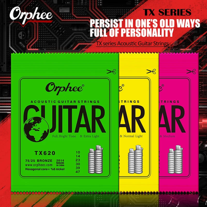 Orphee Acoustic Guitar String 6Pcs/Set Hexagonal Core Full Bright Tone Folk Guitar String TX620 TX630 TX640 Guitar Accessories