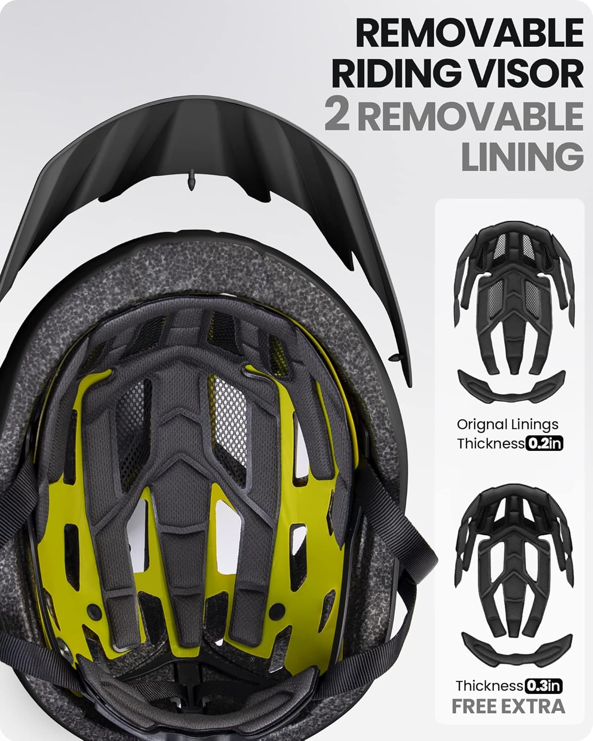 Double Adjustment: 2 different thicknesses liners(0.23 & 0.31 inch) and the adjustment dial maximize the head fit, flexibly adapted to different kinds of cycling glasses and avoid pulling hair