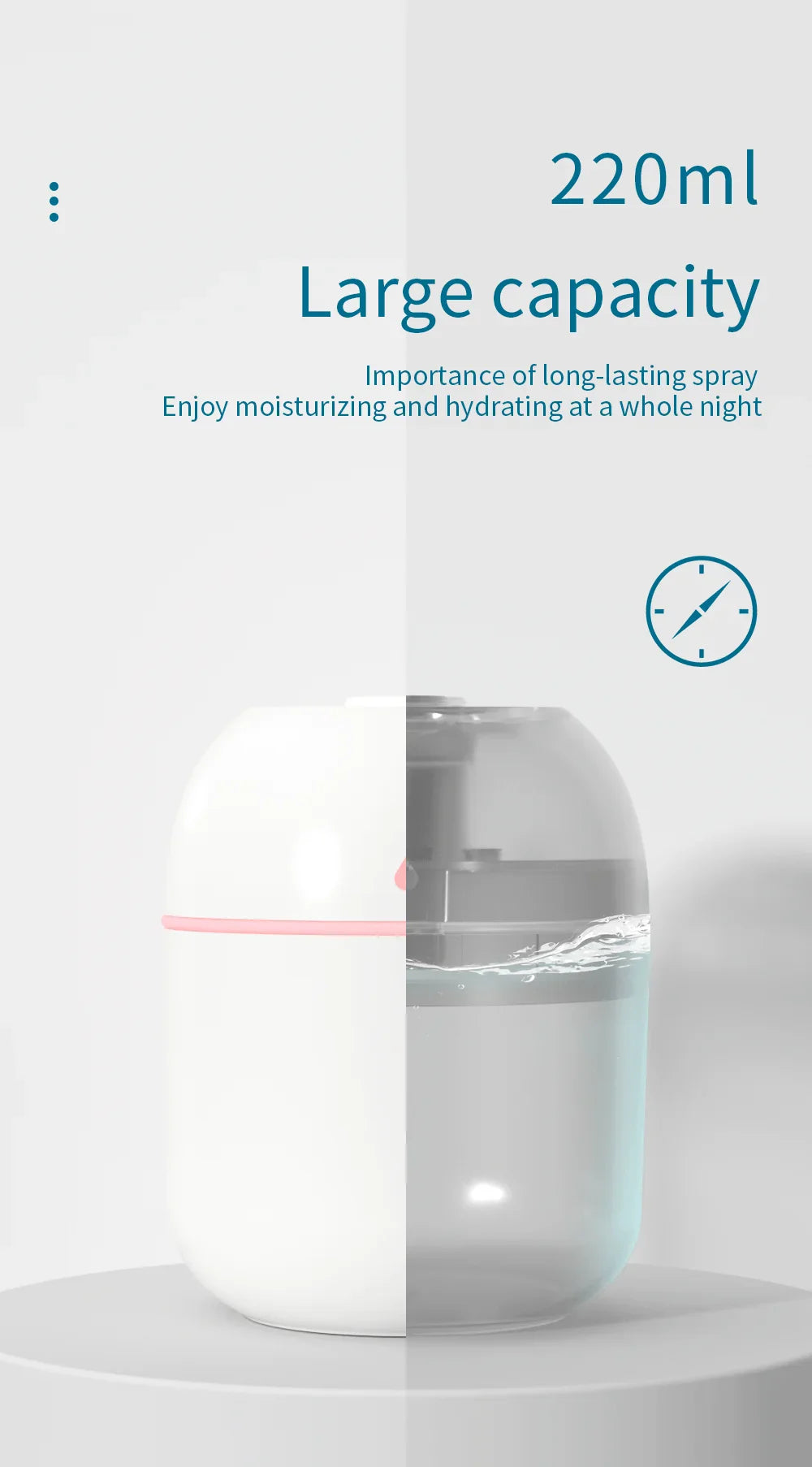 The Portable USB Ultrasonic Mini Humidifier is a multifunctional device designed to improve air quality in compact spaces such as cars, offices, or bedrooms. Featuring a 220ml large-capacity tank, it supports both continuous and intermittent mist modes to provide deep hydration for up to 10 hours.