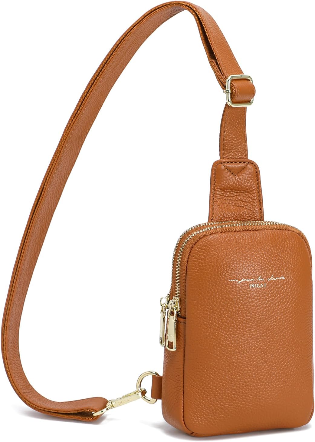 INICAT Travel Small Sling Bag Leather Crossbody Bags for Women Fanny Packs Cross Body Bag for Woman Cross Body Purses