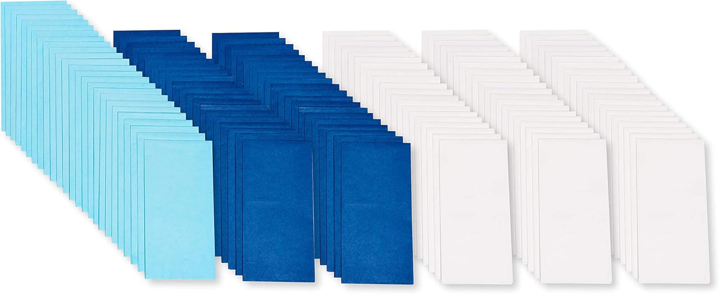 The American Greetings 125 Sheets 20 in. x 20 in. Bulk Tissue Paper is a versatile and essential addition to your gift-wrapping supplies. This pack comes with 125 high-quality sheets of tissue paper in classic white and blue, perfect for wrapping gifts for Christmas, Hanukkah, birthdays, or any occasion. With the generous 20 in. x 20 in. size, each sheet provides ample coverage, making it ideal for a variety of gift sizes.