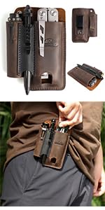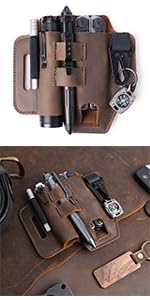 ➤Practical Gift Choice:The leather multitool sheath is a stylish leather craft and a practical gift choice for a men to carry on belt for daily life. The EDC Pocket Organizer could free your mess pocket and very convenient to carry your EDC stuff everyday.