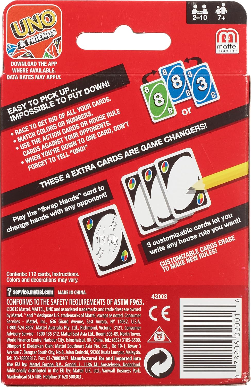 Match cards by color or number in a race to deplete your hand. When down to one card, don't forget to yell, "UNO!"
