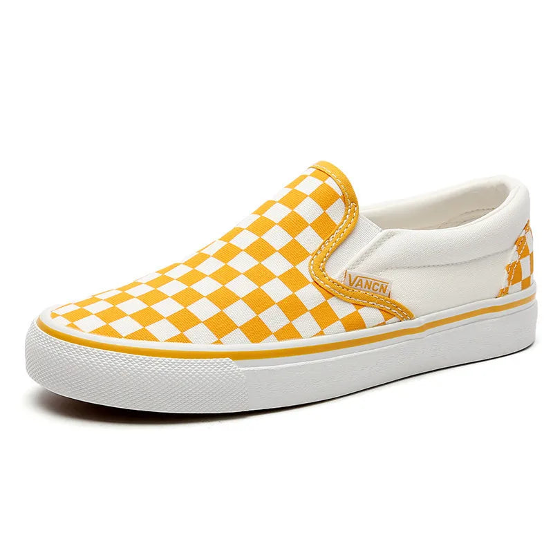 Dive into the timeless cool of Vans with these fiercely fashionable Classic Slip-On sneakers. Crafted for the bold and the spirited, they define effortless style with their iconic checkered pattern and striking white hue. The perfect blend of comfy chic, they come alive with elastic accents and contrasting details, all while proudly flaunting the Vans logo. Made for the streets, the skate park, or simply your daily adventure – step out and stand out.
