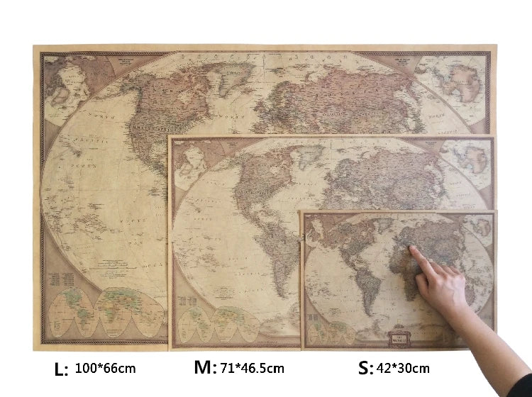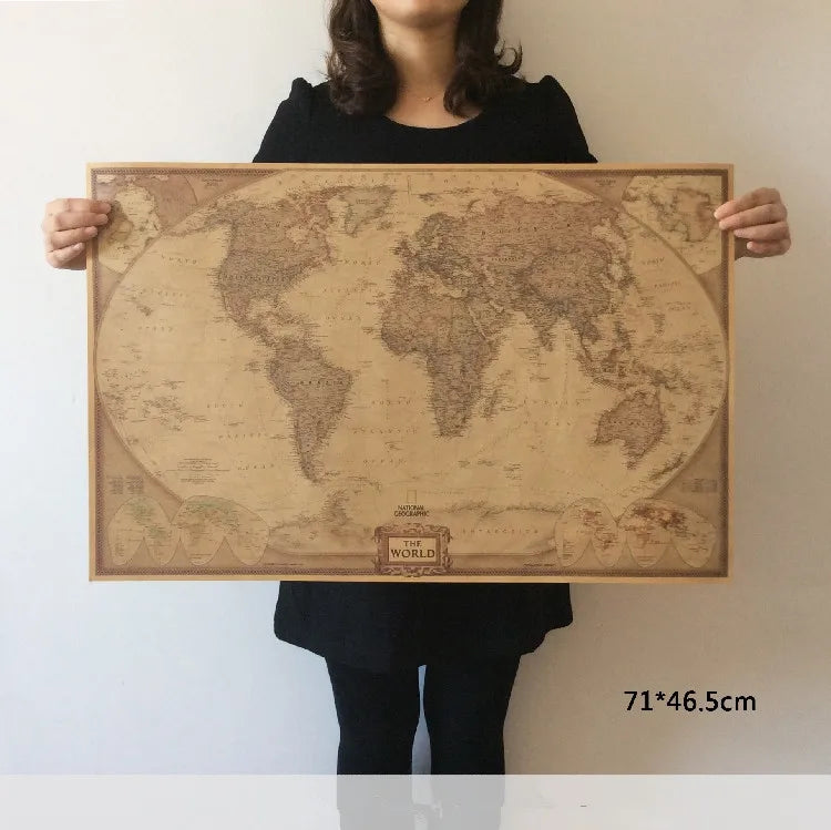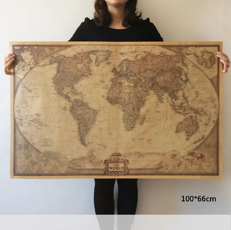 Vintage World Map Travel Home Decoration Detailed Antique Poster Wall Chart Retro Paper Matte Kraft Paper Map World