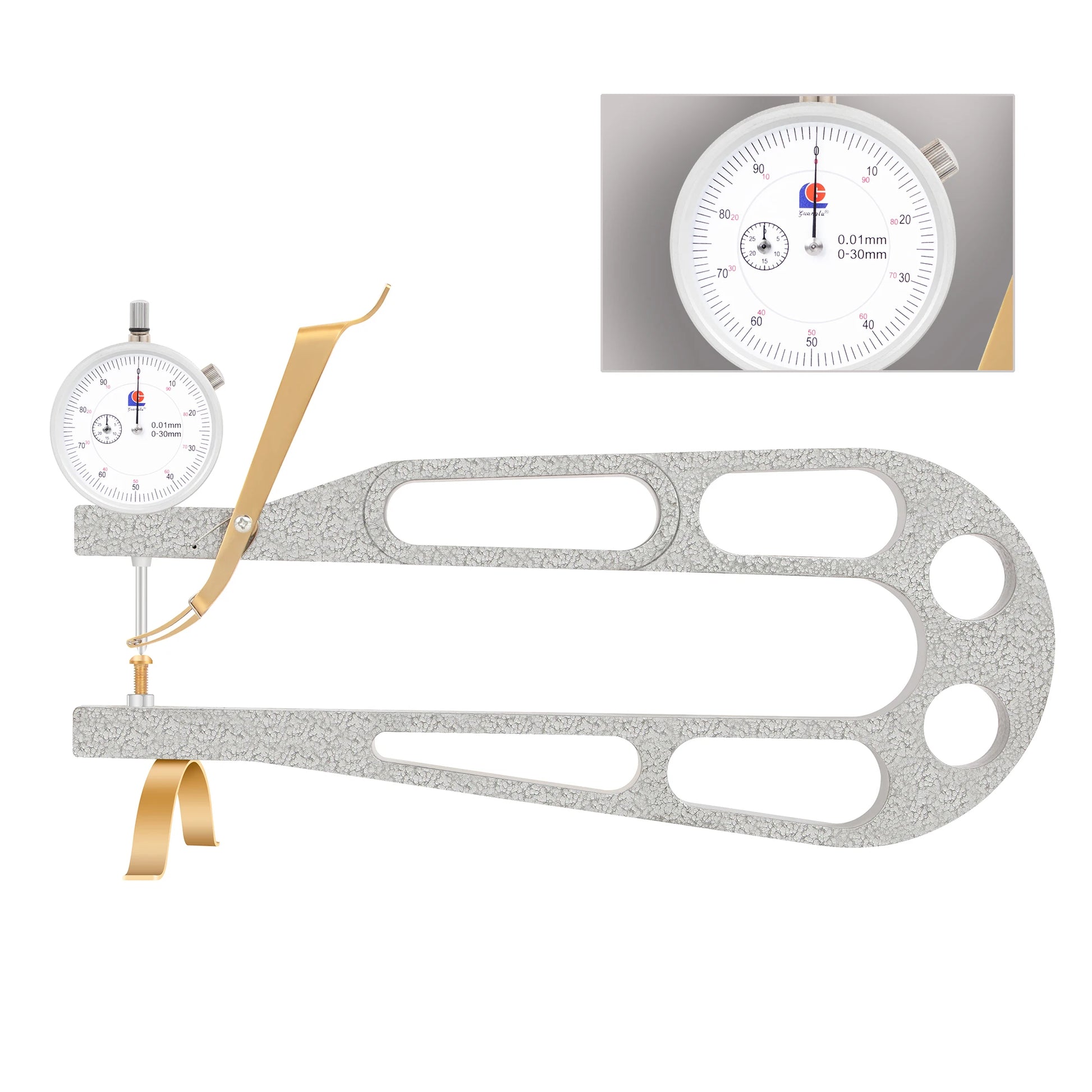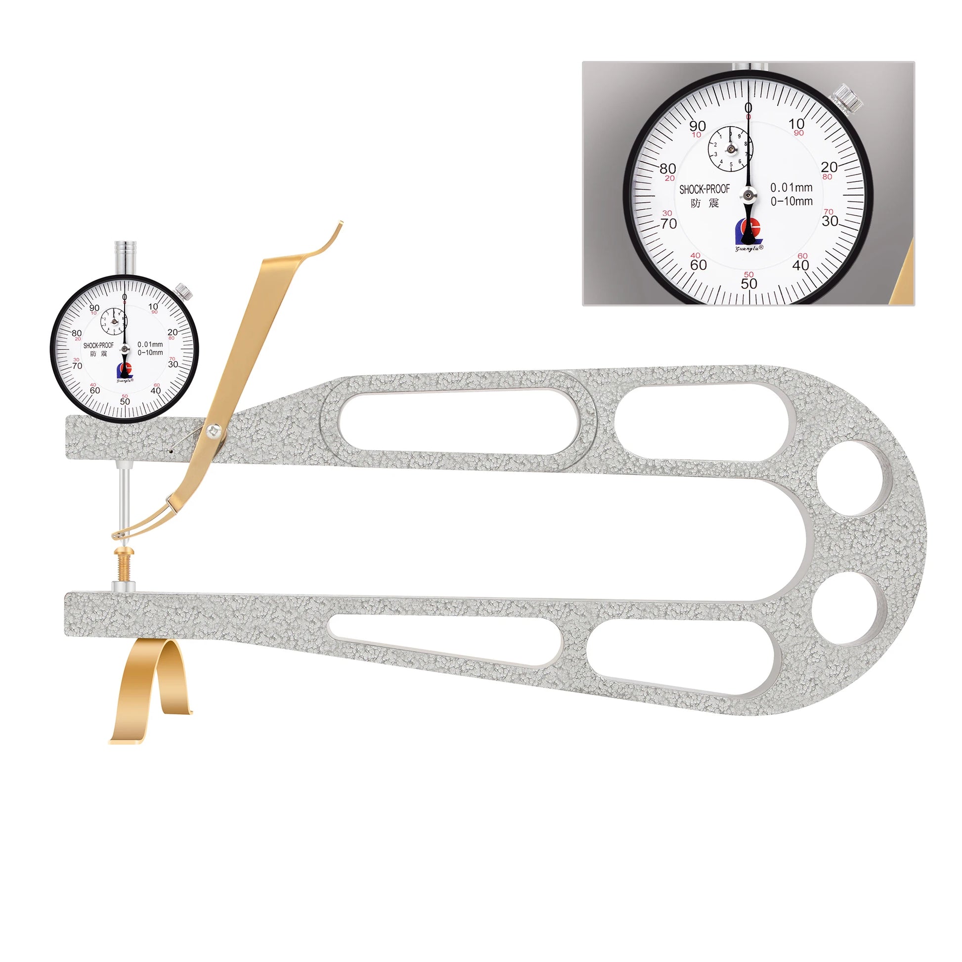 Extreme accuracy with dial Gauge small and large feelers included. top lifting lever allows for un-restricted measuring. Hand held or self standing