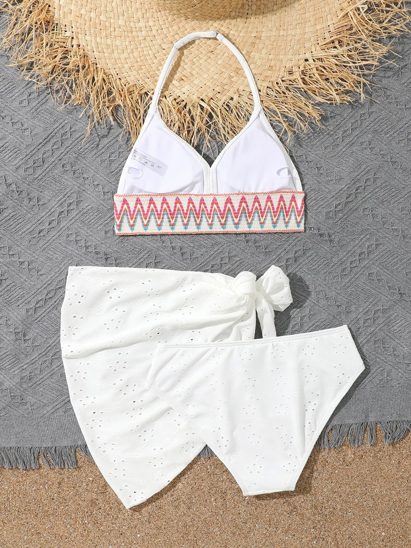 The Girls 3-Pack White Bikini Sets with Skirts are the ultimate summer essential, combining style, comfort, and fun. Each set features a chic bikini top paired with a flared skirt, creating a playful yet modest look that’s perfect for the beach or poolside adventures. The high-waisted design provides extra coverage and a secure fit, making these swimsuits ideal for active girls. Crafted from soft, breathable fabric, they ensure all-day comfort while maintaining a stylish and elegant appearance with their crisp white color.